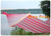 ркий красивый гамак Besta Fiesta Tango сделан вручную (hand made) из высококачественного хлопка, мягкая фактура материала прекрасно адаптируется к форме вашего тела, полотно гамака украшено небольшой изящной бахромой натурального цвета.